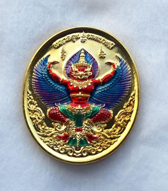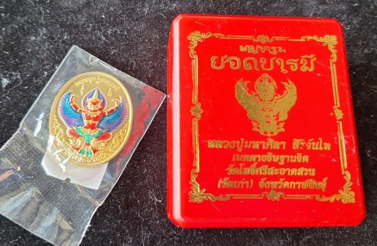 เหรียญพญาครุฑ หลวงปู่ศิลา วัดโพธิ์ศรีสะอาด รุ่นยอดบารมี ลังนำฤกษ์ เนื้อทองทิพย์ ลงยาทรงเครื่อง ลงยาปีกครุฑ No.64