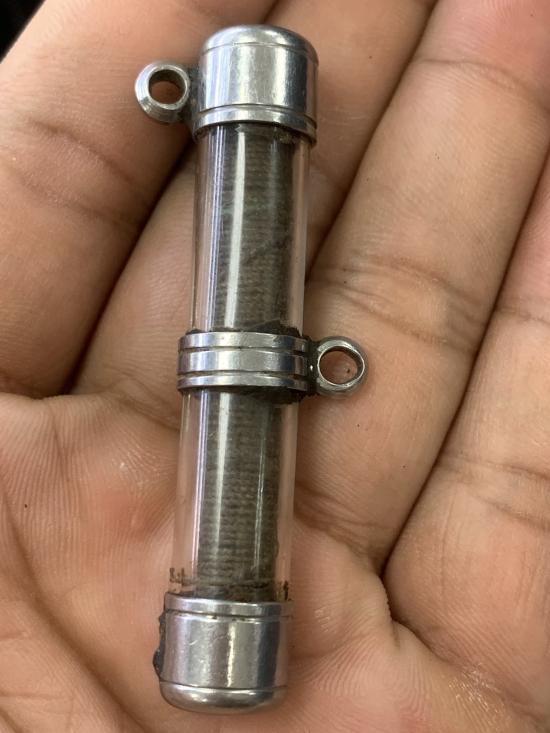 ตะกรุดเก่าอยู่ในหลอด เก่ายาว2.5นิ้ว เก่าไม่ทราบเกจิเชือกปอปาน