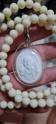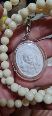 พระผงจักรพรรดิ์สองหน้า หลวงตาม้า วัดถ้ำเมืองนะ เลี่ยมจากวัดพร้อมประคำ