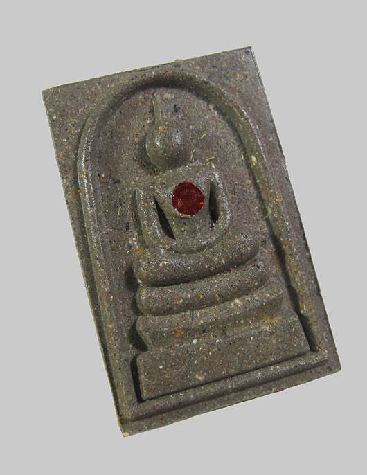 พระสมเด็จ หลังยันต์คาถา ชินบัญชร ( วัดสร้าง ) หลวงปู่ศิลา สิริจันโท ออกวัดโพธิ์ศรีสะอาด รุ่นชินบัญชร เนื้อเทา อกฝังพลอย "" ตอกพิเศษ No 2177
