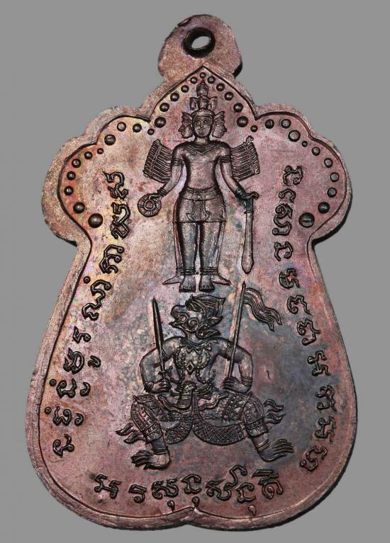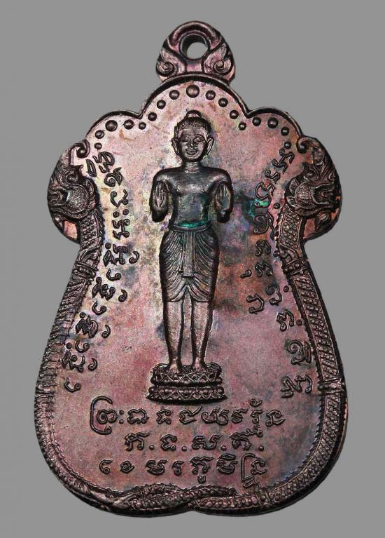 เคาะเดียวแดง เหรียญพระเจ้าชัยวรมัน ปี 26 ออกวัดเลียบ หลวงปู่สรวงเสก |