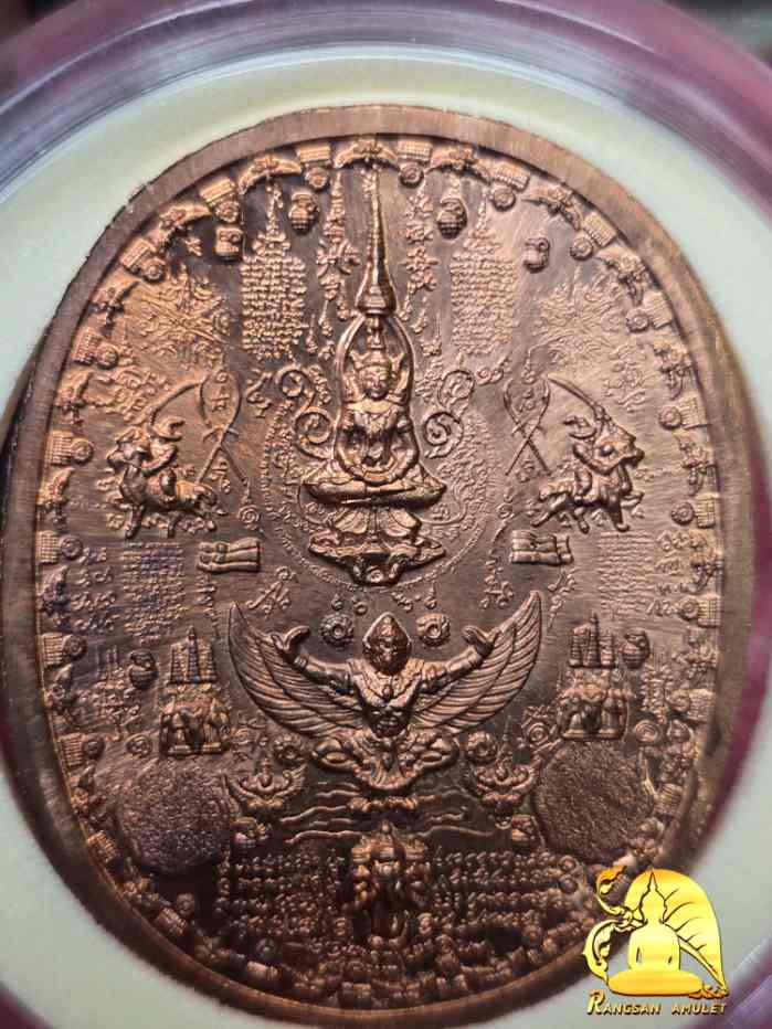 เหรียญระเบิด พระเจ้าตากสินนั่งบัลลังก์ใหญ่ ปี 50 เนื้อทองแดง อาจารย์หม่อมนิรนาม จัดสร้าง |