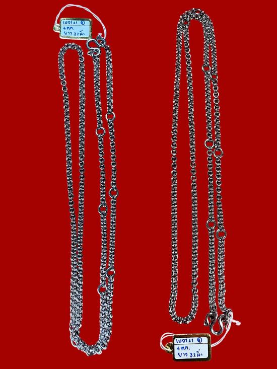 สร้อยแบรน100% ลายห่วงคู่ เบอร์21หนา 4 มิล ใส่พระได้ 9องค์ ความยาว32นิ้ว ครับ |