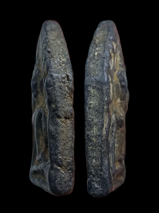 (ขออนุญาตลงใหม่มีคนปิดเล่นค่ะ) พระขุนแผนเนื้อดำ หลังมีจีวร มีรอยหมึก อ่านไม่ออกแล้ว เก่า ไม่ทราบที่ |