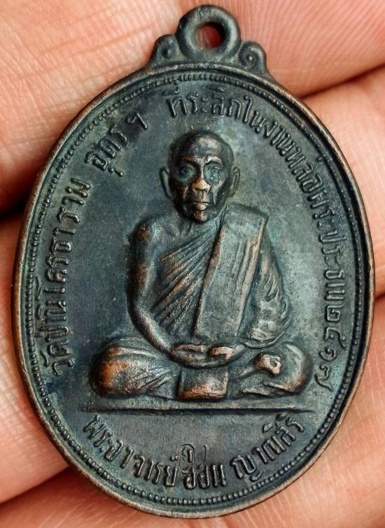 เหรียญรุ่นแรก หลวงปู่อ่อน ญาณสิริ วัดป่านิโครธาราม จังหวัดอุดรธานี ปี 17 |