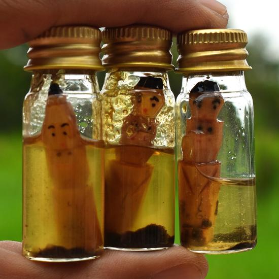 ชุด 3 ขวด...กุมารทองคะนองทรัพย์ในน้ำมัน ปี 2559 หลวงปู่สิงห์ วัดบ้านป่าตะแบง จ.นครราชสีมา พร้อมซองรูปเดิมจากวัด สภาพพระตามรูปที่ลงทุกประการ (ขนาดขวดประมาณ 5.6 x 2 ซม.)