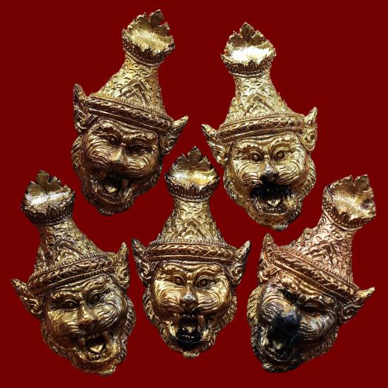 ชุด 5 องค์...เศียรปู่เสือสมิงพราย รุ่นไหว้ครู เนื้อทองชมพู ปี 2557 หลวงปู่สมชาย วัดคงคา จ.กาญจนบุรี พร้อมซองรูปเดิมจากวัด |