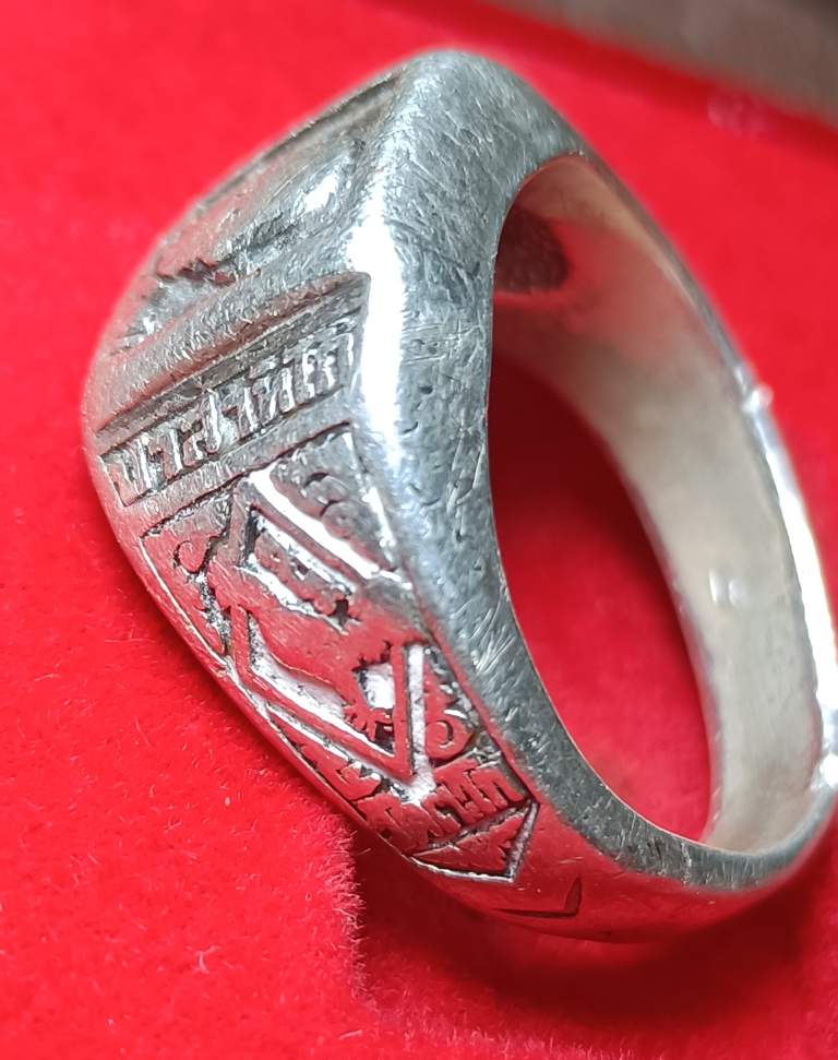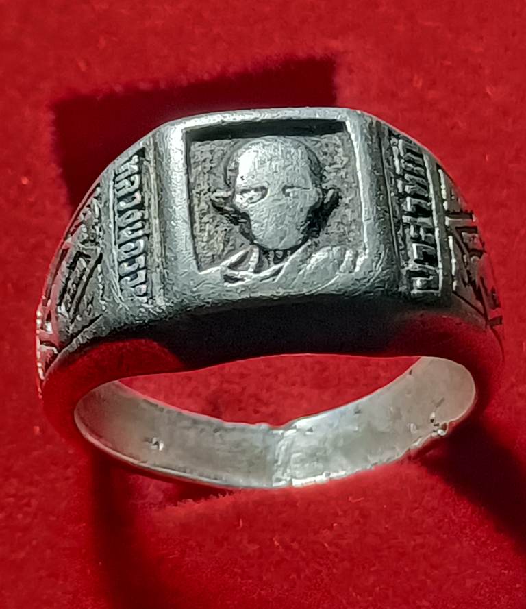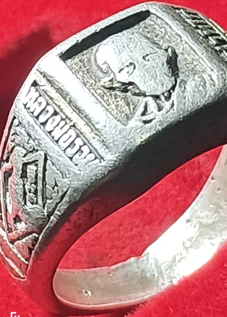 แหวนรวยเจริญสุข เนื้อเงิน พ่อรวย วัดตะโก ปี 56 ขนาด 58 สภาพใช้ โค๊ตชัด |