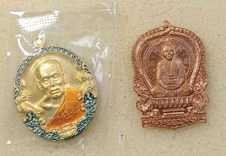 รูปเหมือนปั๊มหลวงพ่อเดิม ปี 37 +รูปเหมือนปั๊ม หลวงพ่อเดิม ไม่ทราบปี + เหรียญหลวงพ่อพัฒน์ วัดห้วยด้วน +เหรียญนั่งพานหลวงพ่อแนม วัดเขาหน่อ นครสวรรค์ |
