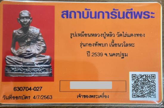 รูปหล่อหลวงปู่หลิว วัดไร่แตงทอง รุ่นกองทัพบกสร้าง เนื้อนวะโลหะ ปี2539 พร้อมบัตรและกล่องเดิม พร้อมบัตรรับรอง