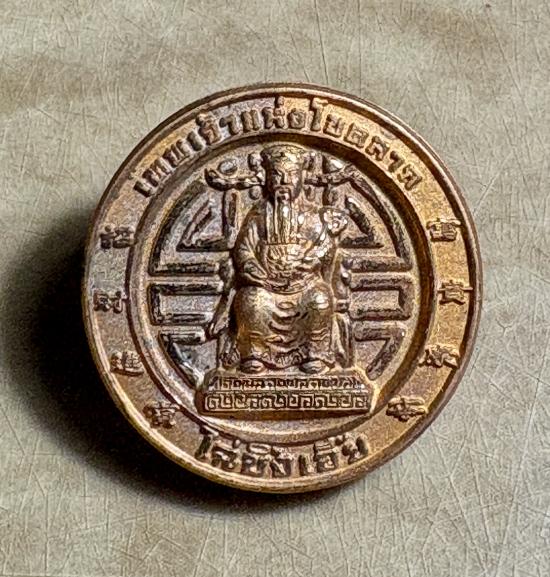 เหรียญเทพเจ้าไฉ่ซิงเอี้ย เทพเจ้าแห่งโชคลาภ เนื้อโลหะเคลือบทองคำ หลังตอกโค๊ดก้อนทอง รุ่นปลดหนี้ วัดเล่งเน่ยยี่ ปี 2545 พร้อมกล่องเดิมจากวัด ไม่ผ่านใช้ |