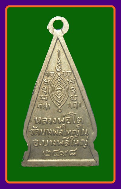 300-เหรียญสามเหลี่ยม หลวงพ่อโต วัดบางพลีใหญ่ใน จ.สมุทรปราการ เนื้ออัลปาก้า พศ.2498 |