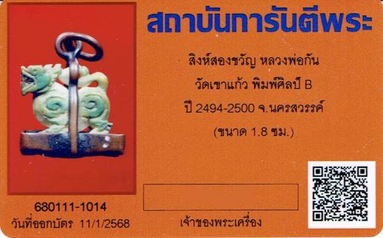 ***สิงห์ตัวนี้เจ้าของเดิมส่งเป็นหลวงพ่อเดิม บัตรออกเป็นสิงห์หลวงพ่อกัน ยุคต้น ว่ากันตามบัตรครับ***