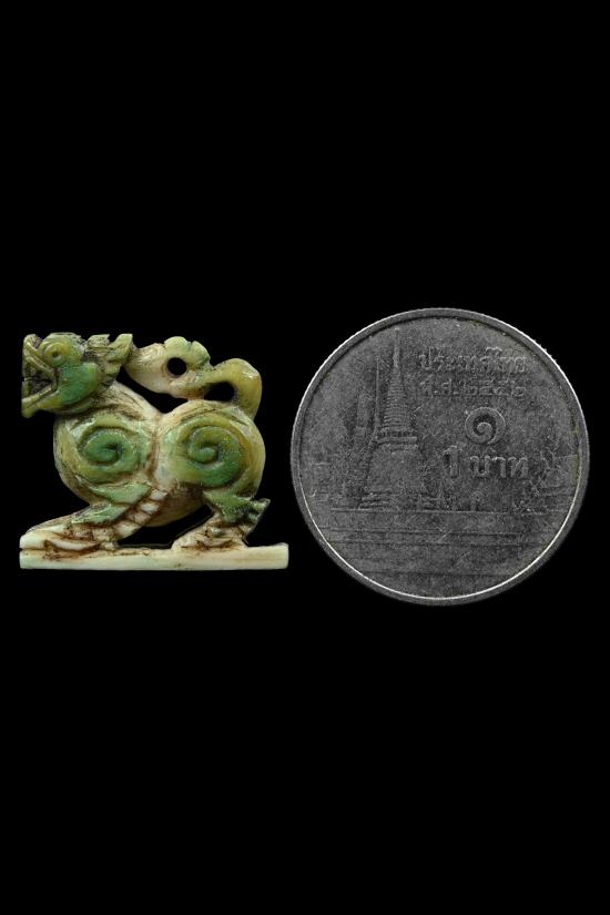 สิงห์สองขวัญ ปากเจาะ(นิยม) หลวงพ่อกัน วัดเขาแก้ว(ยุคต้น)ปี 2494-2500 พิมพ์ศิลป์B ขนาด 1.8 ซ.ม. ตอนนี้เอากระเช้าทองแดงออกไปแล้วครับ เพื่อความคมชัดในการถ่ายรูปครับ