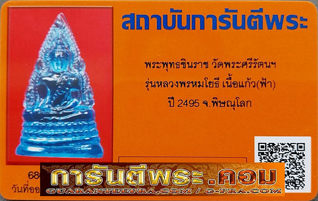 ชื่อพระเครื่อง วัดใจ!!!พระพุทธชินราช วัดพระศรีรัตนฯ รุ่นหลวงพรหมโยธี เนื้อแก้ว(สีฟ้า) ปี2495