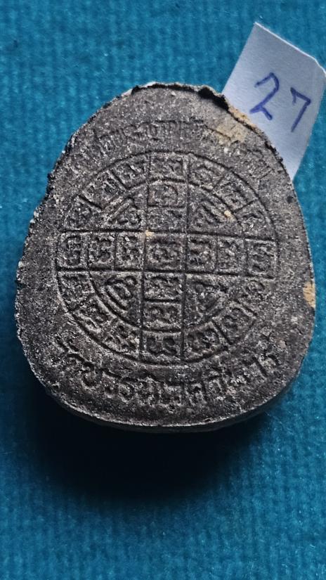 พระปิดตายันต์ดวงเล็ก เนื้อเกสรผสมใบบลาน ตะกรุดเงินครับ(27)