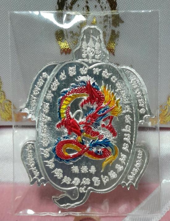 เหรียญ เต่ามังกรปลดหนี้ หลวงปู่เฮง ปภาโส " เนื้อเงินลงยาสามสี (ธงชาติ) No.92 สร้าง 199 องค์ สวยกริ๊ป