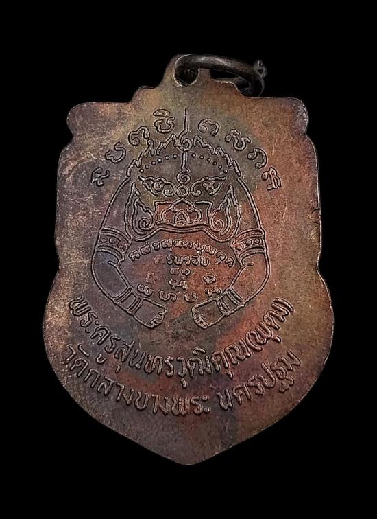 เหรียญปืนไขว้หลังราหู ปี33 เนื้อทองแดงรมดำ หลวงพ่อพุฒ วัดกลางบางพระ จ.นครปฐม |