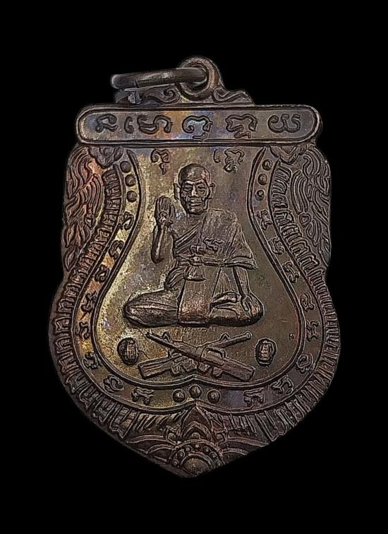 เหรียญเต็มองค์นั่งทับปืนไขว้และลูกระเบิด หลังพระราหู ชาวบ้านเรียกกันว่า