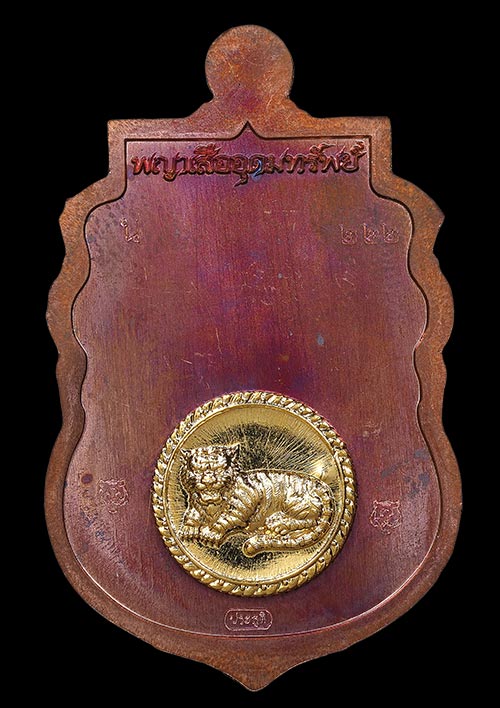 1 ใน 20 เหรียญเสมาพญาเสืออุดมทรัพย์ พระอาจารย์ประสูติ (หลวงพ่อประสูติ) วัดในเตา จ.ตรัง เนื้อนวะโลหะผิวม่วงหน้ากากชุบทองขอบชุบทองลงยาขอบ บล็อคหลังเรียบเสือ หน้ากากชุบทองเสือ เลขตองสวยๆNO.222(เลขมงคล) |