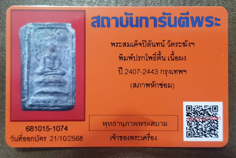 รายละเอียด สมเด็จพระปิลันทน์ พิมพ์ปรกโพธิ์ลึก วัดระฆังฯ"พระสองสมเด็จ" พร้อมบัตรรับรอง