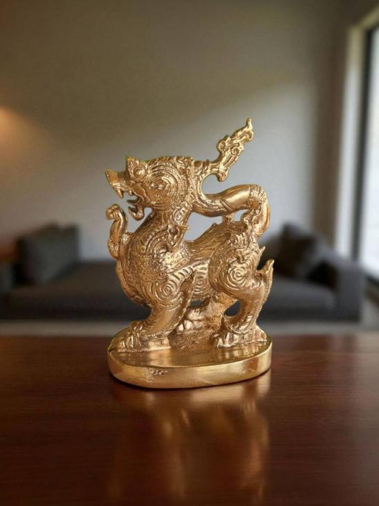 รายละเอียด สิงห์ยกขาขวามหาอำนาจ หรือสิงห์ท่วงท่าตะปบเหยื่อ เนื้อทองเหลือง