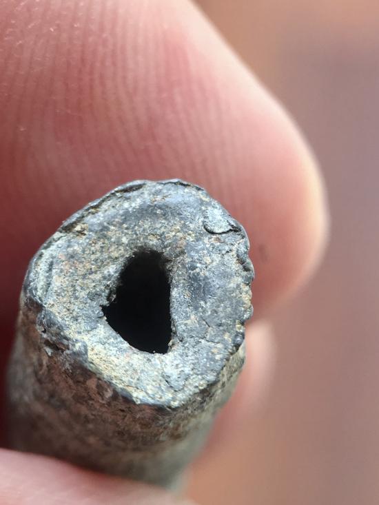 ตะกรุดเนื้อตะกั่ว เก่า ยาวประมาณ 1 นิ้ว ไม่ทราบที่ |