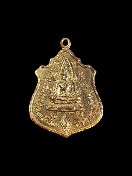 เหรียญกะไหล่ทองพระพุทธชินราช รุ่นพระบารมีปกเกล้า ๙ รัชกาล วัดพระศรีรัตนมหาธาตุจังหวัดพิษณุโลก หลวงพ่อกวย ร่วมปลุกเสก |