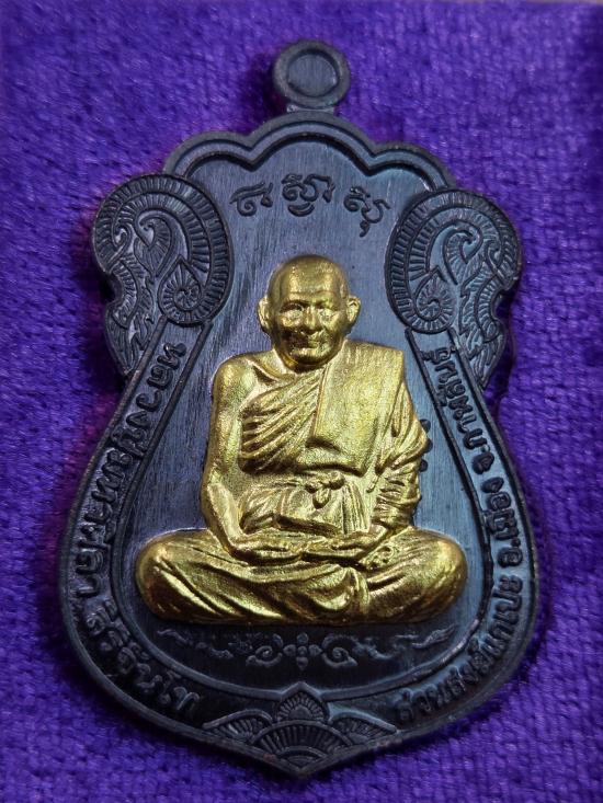 เสมารุ่นรวยทันใจ ปี 2564 หลวงปู่ศิลา สิริจันโท เนื้อทองแดงรมดำ หน้ากากทองทิพย์ แจกกรรมการ สร้าง 1,999 เหรียญ no.112