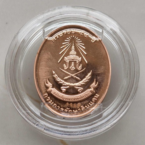 เหรียญพระพุทธรัชมงคลปัญญากาญจนบดี ญสส. ครบรอบ 54 ปี กรมการรักษาดินแดน เนื้อทองแดงนอก No.01705 พร้อมกล่อง
