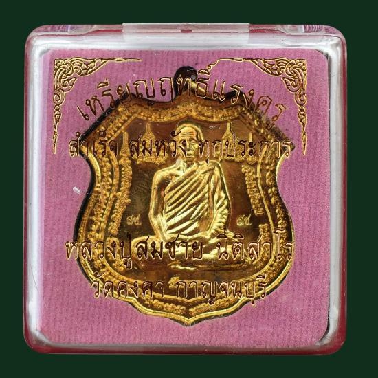 *** เคาะเดียวแดง ทุกรายการ *** เหรียญฤทธิ์แรงครูหลังพระพิฆเณศ เนื้อทองทิพย์ หลวงปู่สมชาย วัดคงคา กาญจนบุรี ปี 2557 มีกล่อง สภาพตามรูป (No.1)