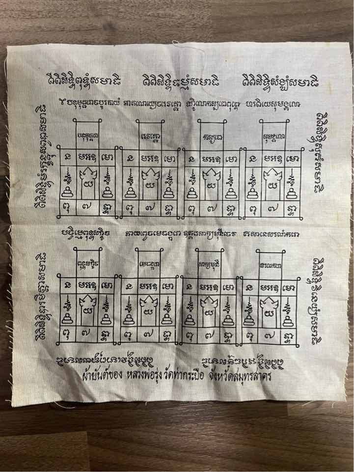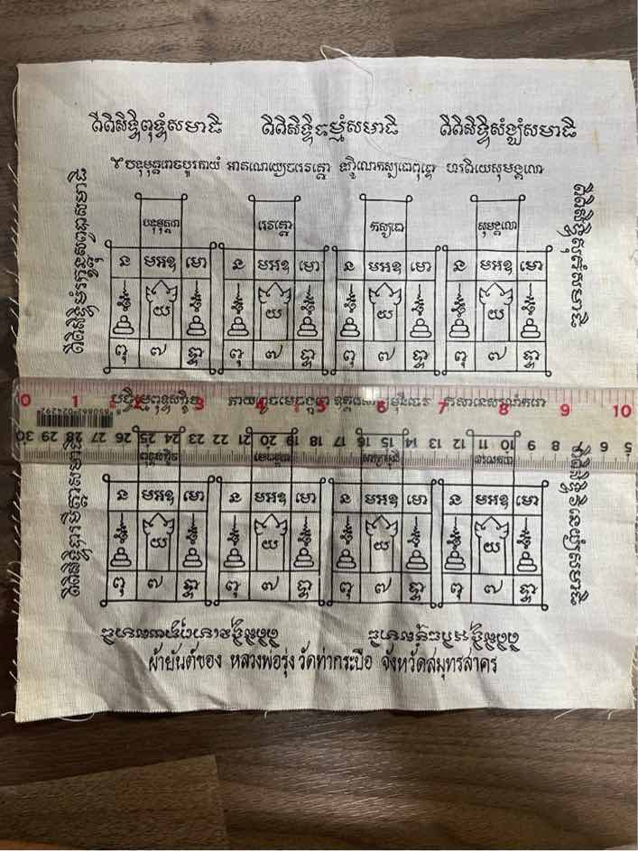 150.- ems ผ้ายันต์จันทร์เพ็ญ หลวงพ่อรุ่ง วัดท่ากระบือ จ.สมุทรสาคร ปี 2535 ยาว 10.5นิ้ว / กว้าง 10 นิ้ว *ผ้ายันต์นี้สร้างขึ้นในคืนวันเพ็ญ (วันพระจันทร์เต็มดวง) |