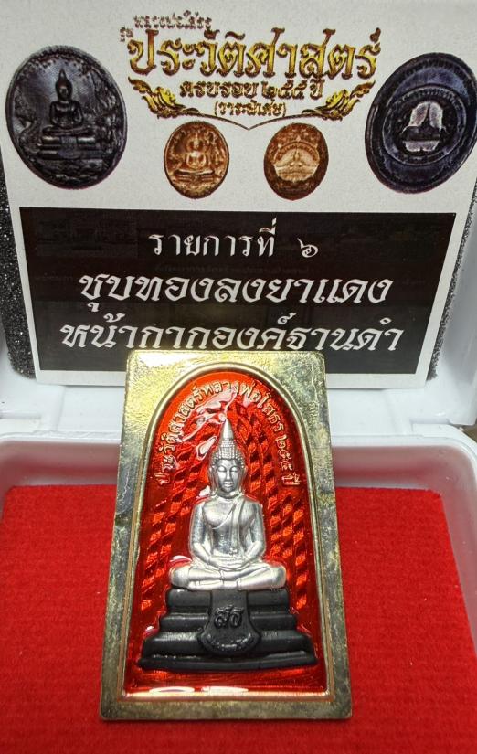 ((วัดสร้าง))เหรียญหลวงพ่อโสธรรุ่นประวัติศาสตร์ครบรอบ 255 ปี วาระพิเศษ พิมพ์สมเด็จชุบทองลงยาแดงหน้ากากองค์ฐานดำ โค้ตเลข 59 พร้อมกล่องเดิม |