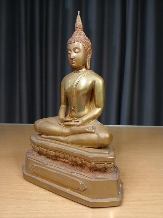 พระบูชาหลวงพ่อมหาสิทธิชัย วัดทองเพลง ธนบุรี ปี 30 หน้าตัก 5 นิ้วทองเหลืองขัดเงา สภาพสวย