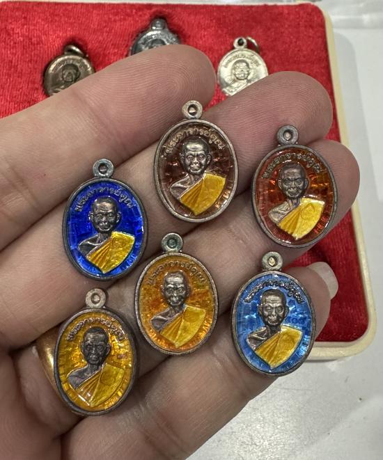 เหรียญเม็ดก๋วยจี๊ รุ่นอายุยืน ปี2553 1ชุด มี 10เหรียญ มีเนื้อเงิน ลงยา 6 เหรียญ มีกล่องเดิม