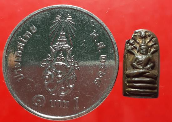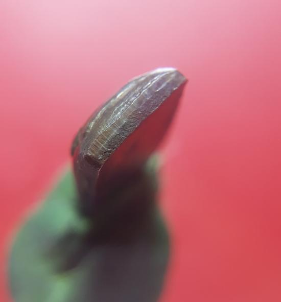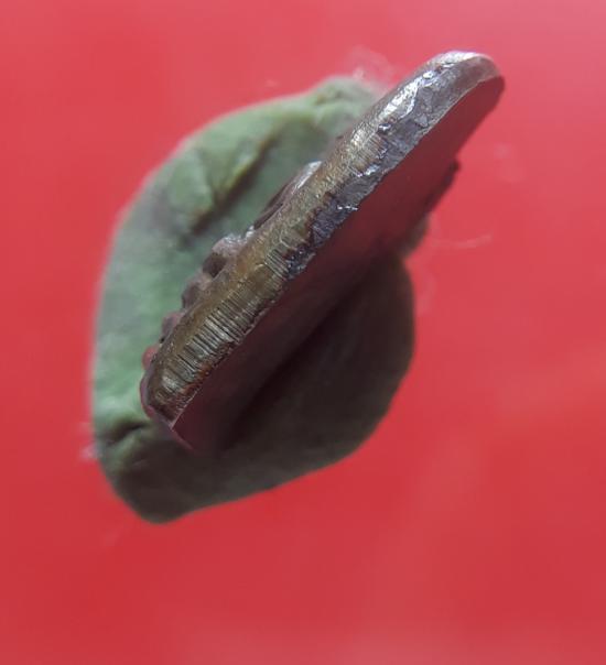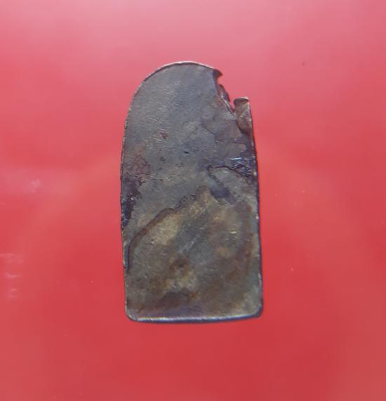 เหรียญปรกมะขาม หลังเรียบ เนื้อทองแดง,ปั้มไม่เต็มมีรอยแหว่ง ไม่ทราบที่ เคาะเดียวแดง