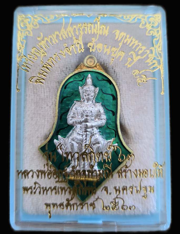 ท้าวเวสสุวรรณโณ เหรียญจำปี เทวสถิตย์ 63 (จำปี 45 ย้อนยุค) เนื้อกระไหล่ทองลงยาเขียวหน้ากากเงินกรรมการลายเสือ เลข 850 หลวงพ่ออิฎฐ์ วัดจุฬามณี ประกันแท้ตลอดชีพครับ |