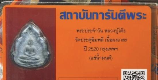 พระผงประจำวันเกิด เนื้อผงเกสร ปี 2520 หลวงปู่โต๊ะ วัดประดู่ฉิมพลี พระพิมพ์นี้สร้างขึ้นมาจากความคิดที่ว่าหลวงปู่โต๊ะได้เดินทางไปเยือนที่ประเทศอินเดีย ได้นั่งสมาธิที่ใต้ต้นโพธิ์ที่พุทธคยา จึงได้สร้างพระประจำวันเกิดของหลวงปู่โต๊ะขึ้น คือ ( วันพฤหัสบดี ) ที่มีรูปแบบเป็นใบโพธิ์ จำนวนสร้าง 10,412 องค์ มีทั้งเนื้อผงเกสรและเนื้อผงใบลาน พระพิมพ์นี้หลวงปู่โต๊ะได้สร้างขึ้นมาเพื่อแจกโดยเฉพาะมิได้ให้มีการเช่าบูชา เนื้อเกสรสร้างประมาณ 2,000 องค์ครับ