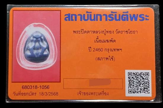 เคาะเดียว...ปิดตาหลวงปู่ทองวัดราชโยธา ปี2460 พิมพ์หัวโหนก เนื้อเมฆพัตร หลังยันต์สี่ (นิยมสุด) สภาพยังสวยอยู่ครับ พร้อมบัตรรับรองพระแท้