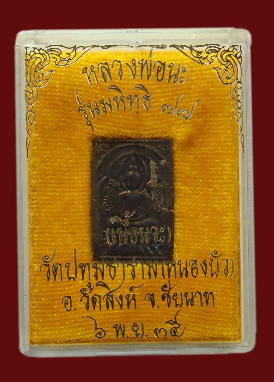 เหรียญบัวไขว้ รุ่นมหิทธิ 77 หลวงปู่นะ วัดหนองบัว จ.ชัยนาท ปี2535เนื้อนวะ พร้อมกล่อง แดง120 |