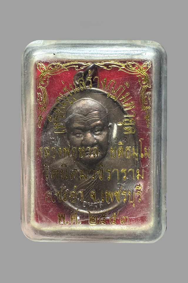 เหรียญสร้างกุฎิมหาอุด หลวงพ่อหวล วัดนิคมวชิราราม เนื้อนวโลหะ |
