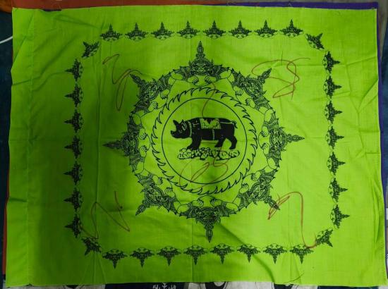 ผ้ายันต์ธงนามปี พิธีเทวสถานเขาคา ขนาดกว้าง 40 นิ้ว ขนาดสูง 30 นิ้ว อ.สิชล จ.นครศรีธรรมราช ปี 2544 ปีกุน |