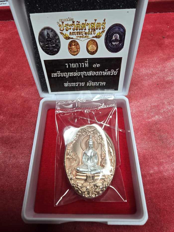 เหรียญหลวงพ่อโสธรรุ่นประวัติศาสตร์ครบรอบ 255 ปี วาระพิเศษ (วัดสร้าง) เหรียญหล่อชุบสองกษัตริย์พ่นทรายเงินนาค เลข126 พร้อมกล่องเดิม |