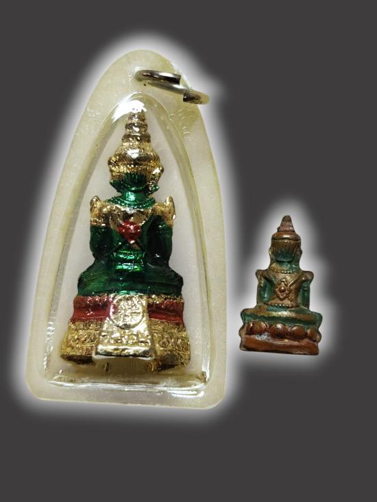 ชื่อพระเครื่อง A2993.หล่อรูปเหมือน พระแก้วมรกต 2 องค์ เคาะดียวเเดง