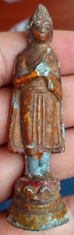 เคาะเดียวแดง.....พระพุทธปางรำพึง เนื้อตะกั่วสนิมแดง ใต้ฐานอุดผง (พระแก้บน) ขนาดพระสูง 8 ซม. |