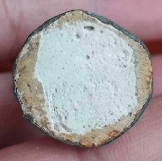 พระพุทธปางรำพึง เนื้อตะกั่วสนิมแดง ใต้ฐานอุดผง (พระแก้บน) ขนาดพระสูง 8 ซม. |