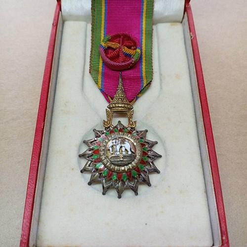 เหรียญเครื่องราช ช้างเผือก เนื้อเงินลงยา พร้อมแพรแถบ พร้อมกล่อง