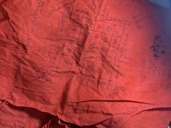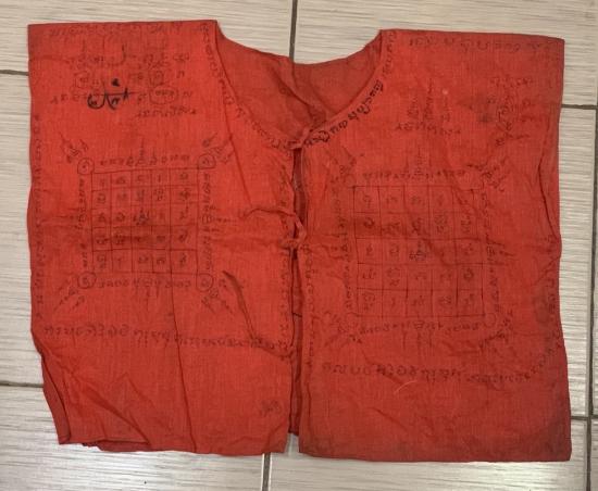 เสื้อยันต์แดงจารหมึกปากกา ไม่ทราบที่ครับ |