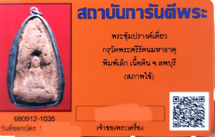 ชื่อพระเครื่อง พระซุ้มปรางค์เดี่ยว เนื้อดิน กรุวัดพระศรีฯ จ.ลพบุรี มาพร้อมบัตรรับรอง
