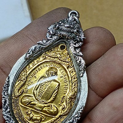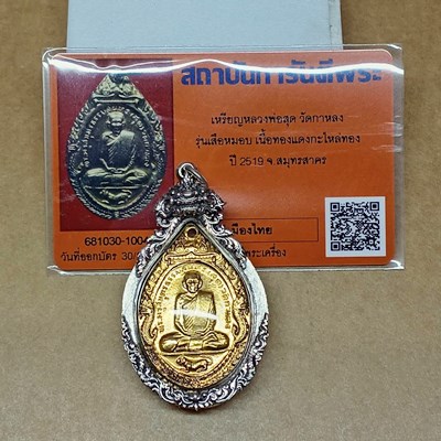 เหรียญเสือหมอบ เนื้อทองแดงกะหลั่ยทอง( ผิวสวยเหมือนทองคำ) หลวงพ่อสุด วัดกาหลง ปี2519 บัตร g และเลี่ยมกรอบเงินแท้ งาน 92.5% ขึ้น งานมือหนึ่ง กรอบหนา รมดำ สวยๆ classic. |